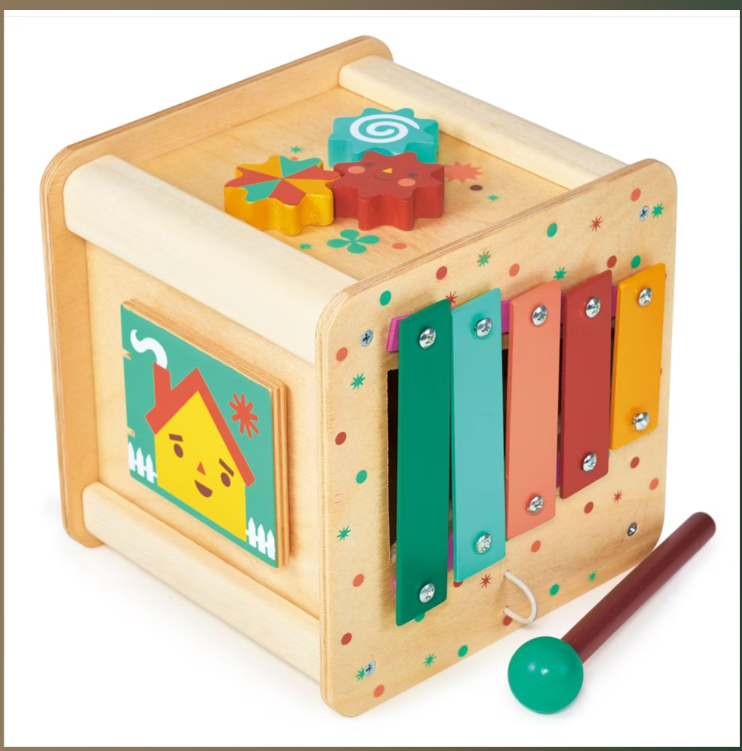 This simple, four piece wooden baby blocks are illustrated with warm bright colours and simple graphics. Challenge your toddler to create 4 different animal pictures using the tray to keep them safe. A fantastic first toy for your toddler, as it helps to develop hand eye coordination, spatial thinking, and concentration.